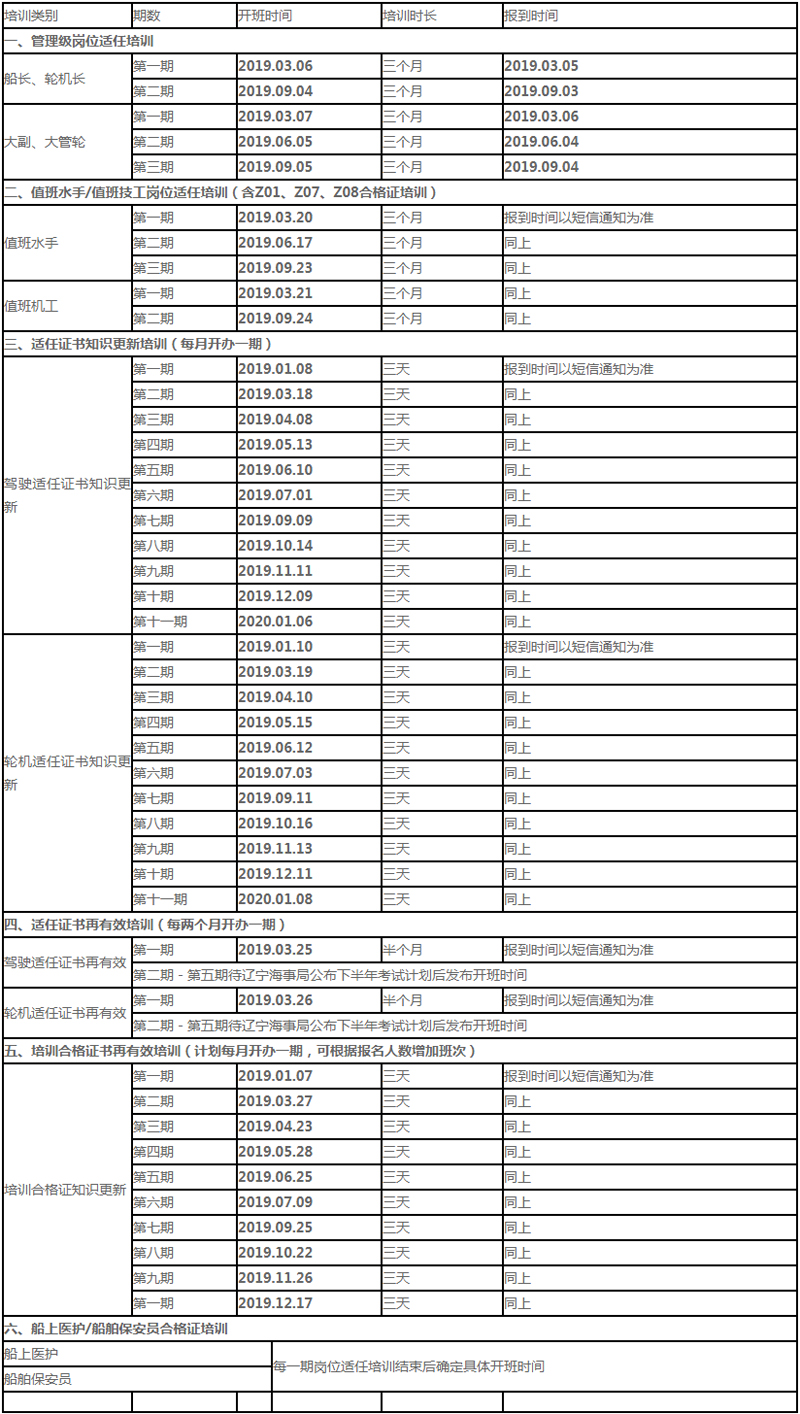 大连海事大学船员培训中心2019年海船船员培训计划 各航运单位及船员: